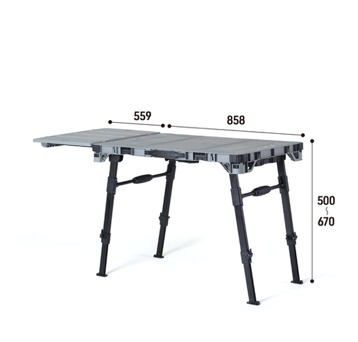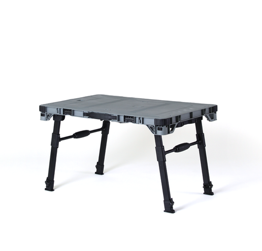 テーブルのハンドルを伸ばして、コンテナの蓋を乗せるとテーブルを拡張することができます。